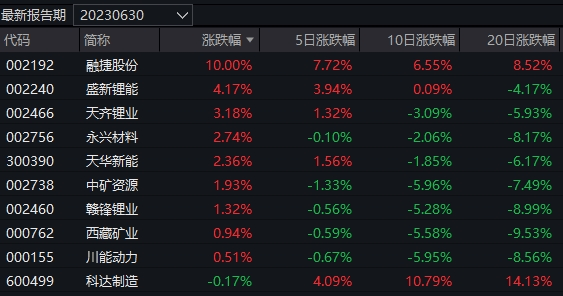 重仓股来看,领涨的长安裕盛A,主要持有锂电池相关的个股,包括赣锋锂业、永兴材料、天齐锂业等。