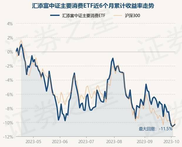 证券之星消息,10月12日,汇添富中证主要消费ETF最新单位净值为0.9041元,累计净值为3.6164元,较前一交易日上涨0.16%。历史数据显示该基金近1个月下跌4.13%,近3个月下跌2.7%,近6个月下跌10.25%,近1年下跌10.82%。该基金近6个月的累计收益率走势如下图:
