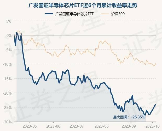 证券之星消息,10月12日,广发国证半导体芯片ETF最新单位净值为0.487元,累计净值为0.974元,较前一交易日上涨0.47%。历史数据显示该基金近1个月上涨0.14%,近3个月下跌7.02%,近6个月下跌22.16%,近1年上涨1.76%。该基金近6个月的累计收益率走势如下图: