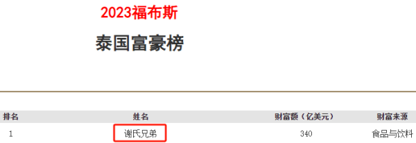 2023福布斯泰国富豪榜,数据来源:福布斯官网