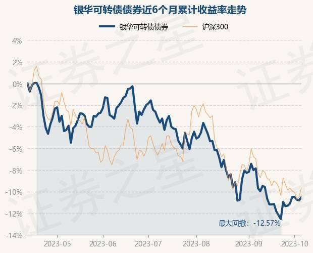 证券之星消息,10月12日,银华可转债债券最新单位净值为1.3543元,累计净值为1.3543元,较前一交易日上涨0.33%。历史数据显示该基金近1个月下跌1.03%,近3个月下跌6.51%,近6个月下跌10.52%,近1年下跌13.25%。该基金近6个月的累计收益率走势如下图: