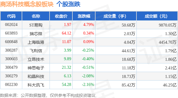 证券之星消息,10月12日商汤科技概念股板块较上一交易日下跌0.91%,科大讯飞领跌。当日上证指数报收于3107.9,上涨0.94%。深证成指报收于10168.49,上涨0.83%。商汤科技概念股板块个股涨跌见下表: