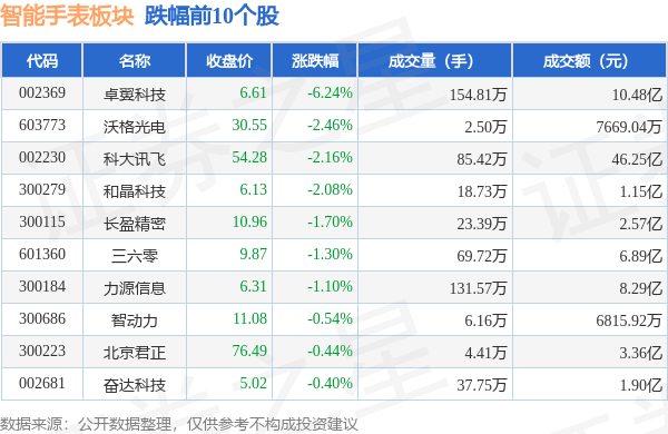 从资金流向上来看,当日智能手表板块主力资金净流出7.59亿元,游资资金净流入8733.28万元,散户资金净流入6.72亿元。智能手表板块个股资金流向见下表: