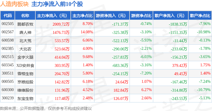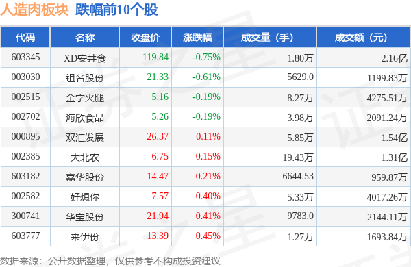北向资金方面,当日人造肉板块北向资金持股市值为98.68亿元,增持0.4亿元。其中增持最多的是双汇发展,增持了0.18亿元。减持持最多的是XD安井食,减持了0.19亿元。人造肉板块北向资金持股变动明细见下表: