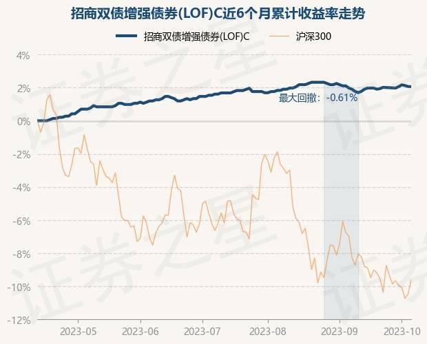 证券之星消息,10月12日,招商双债增强债券(LOF)C最新单位净值为1.4972元,累计净值为1.6362元,较前一交易日下跌0.01%。历史数据显示该基金近1个月上涨0.28%,近3个月上涨0.35%,近6个月上涨1.99%,近1年上涨2.69%。该基金近6个月的累计收益率走势如下图: