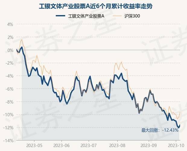 证券之星消息,10月12日,工银文体产业股票A最新单位净值为2.642元,累计净值为2.831元,较前一交易日上涨0.46%。历史数据显示该基金近1个月下跌3.68%,近3个月下跌5.98%,近6个月下跌11.64%,近1年下跌7.0%。该基金近6个月的累计收益率走势如下图: