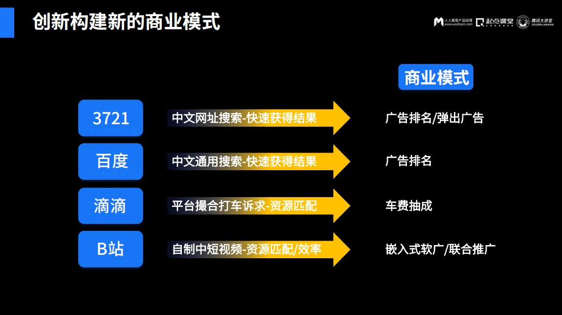 创新不等于新的商业模式,像弹出广告这类模式就引起了许多用户的不满;广告排名这一商业模式简单有效,虽存在一定的负面影响,但仍然坚挺;车费抽成模式很可能造成B端与C端的不满,所以难有大幅扩张,导致上限受制;嵌入式软广这一模式的制作成本高,所以难以标准化。