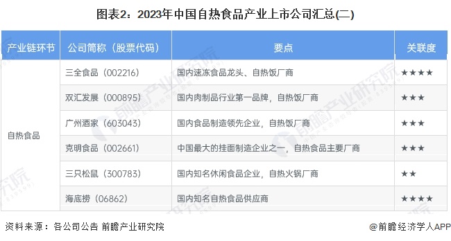 近年来,我国自热食品行业稳步发展。目前,我国自热食品产业的上市公司数量仍相对较少。其中,主营业务包含自热食品的上市公司包括:三全食品、广州酒家、双汇发展、海底捞、三只松鼠等。