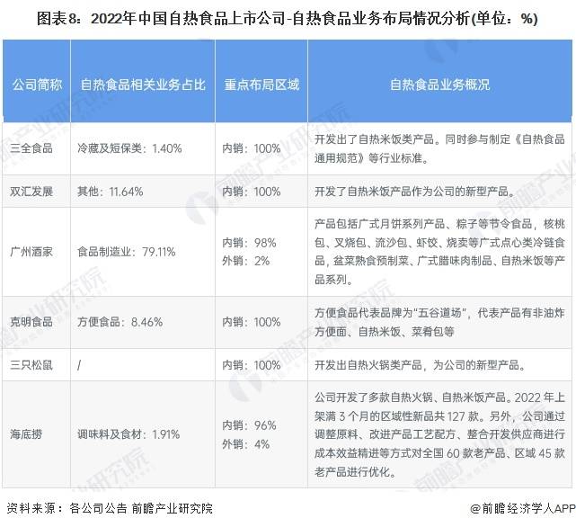 自热食品行业的上市公司中,大部分企业聚焦布局国内市场,相较而言,海底捞在国外业务布局上则更为积极;同时,从业务占比可以看出,自热食品仅为代表性企业的副业。