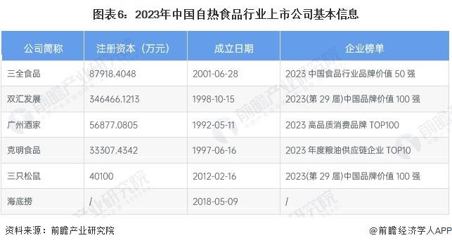 从自热食品行业的上市企业布局和已有公开信息分析,注册资本最多的是双汇发展,其次是三全食品;成立时间最早的是广州酒家,其次是克明食品。
