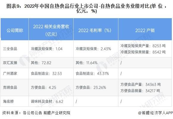 从上市公司自热食品相关营收来看,2022年,广州酒家的自热食品相关业务营收超33亿元;从上市企业相关业务毛利率情况来看,克明食品、广州酒家自热食品业务的毛利率相对较高。