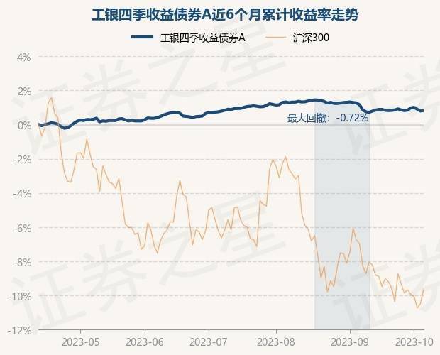 证券之星消息,10月12日,工银四季收益债券A最新单位净值为1.0812元,累计净值为1.8154元,较前一交易日上涨0.02%。历史数据显示该基金近1个月上涨0.03%,近3个月下跌0.07%,近6个月上涨0.83%,近1年上涨1.58%。该基金近6个月的累计收益率走势如下图: