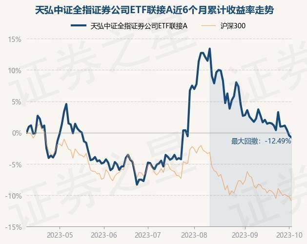 10月10日,天弘中证全指证券公司ETF联接A最新单位净值为1.0298元,累计净值为1.0298元,较前一交易日下跌0.29%。历史数据显示该基金近1个月下跌2.92%,近3个月上涨4.4%,近6个月下跌0.74%,近1年上涨15.05%。该基金近6个月的累计收益率走势如下图: