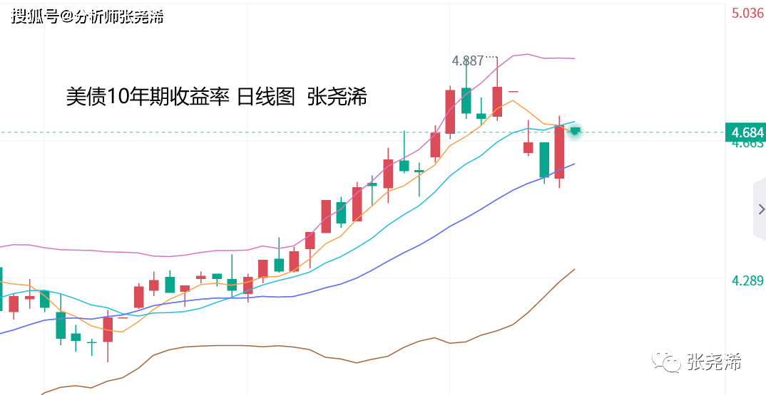 另外,美债10年期收益率各周期走势信号,也亦是如此,因而整体来看,美元指数及美债收益率两大影响因素目前已经再度转强,所以,金价也将再度面临遇阻回落的预期发展。后市将偏向反弹高空为主。等待再度回落。