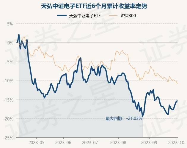10月10日,天弘中证电子ETF最新单位净值为0.918元,累计净值为0.918元,较前一交易日上涨0.38%。历史数据显示该基金近1个月下跌0.4%,近3个月下跌7.36%,近6个月下跌15.3%,近1年上涨15.14%。该基金近6个月的累计收益率走势如下图: