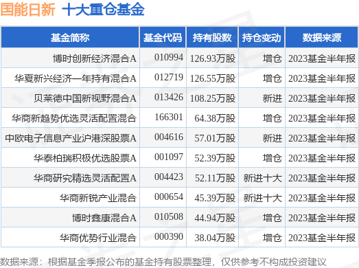 重仓国能日新的前十大公募基金请见下表: