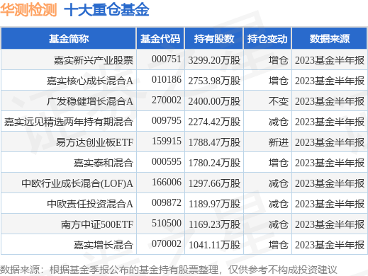 重仓华测检测的前十大公募基金请见下表: