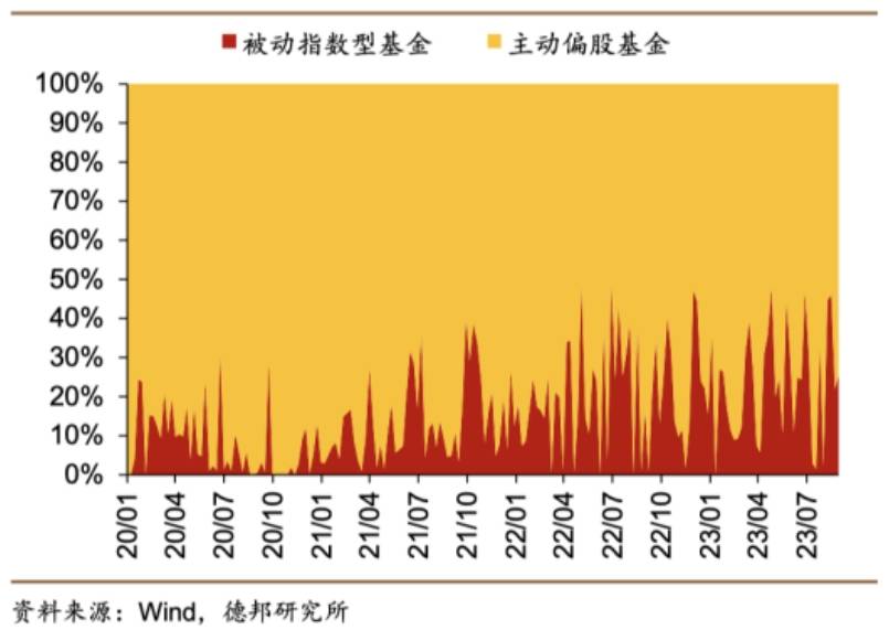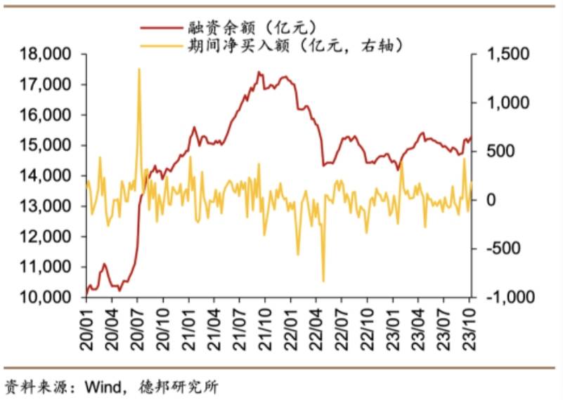 对于资金供给端而言,内资力量尚待形成合力。公募基金新发目前仍处在底部修复区间,同时,由于预估基金申赎比在2023年下半年多数时候小于1,公募仍然面临着下半年较强的负债端压力,短期内加力面临一定掣肘。但也存在一些亮点,一是杠杆资金力量并不弱,边际上甚至出现一些加速流入的迹象;二是被动指数型基金对资金面的支撑较强。