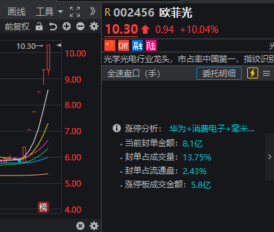 还有昨天96亿元成交额“强行”涨停的欧菲光,今天也收获了6连板,同样超出许多观望者的预期。