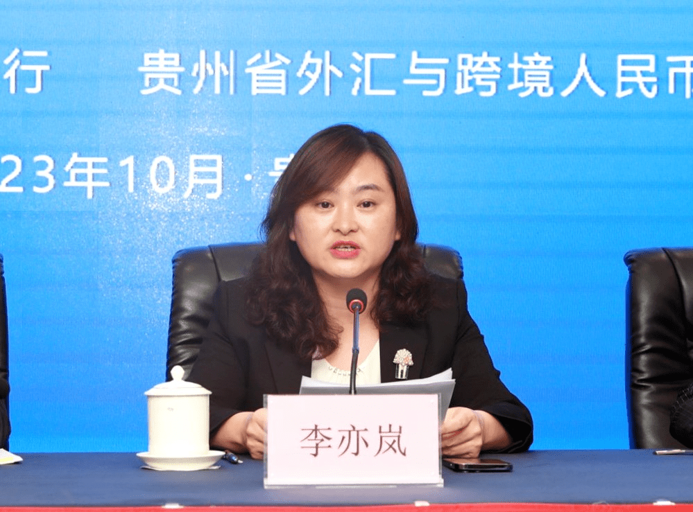 (中国银行贵州省分行交易银行部总经理李琼介绍跨境人民币结算业务便利化服务措施。)