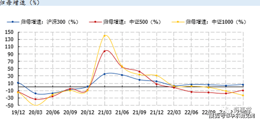当然在业绩低谷比如2020年1季度,中证1000的增速回落幅度也比中证500和沪深300回落幅度深。