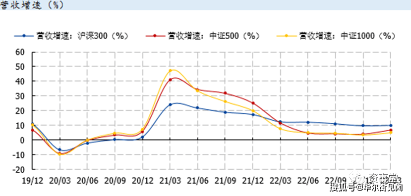 以上一轮高增长期的巅峰时期,2021年1季报观察,沪深300(指数成分股)的营收增速是23.99%,中证500刚超过40%,而中证1000是47.19%。