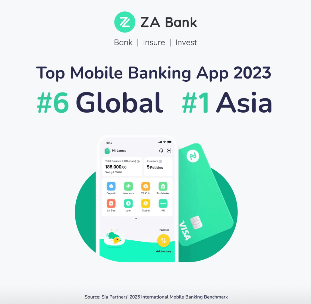 ZA Bank App是众安银行面向C端用户的终端产品。2023年9月27日,Sia Partners发布《2023年国际移动银行基准》,众安银行首次跻身全球前十,众安银行位居全球第六,亚洲第一,同时已连续两年蝉联亚洲最佳Mobile App。