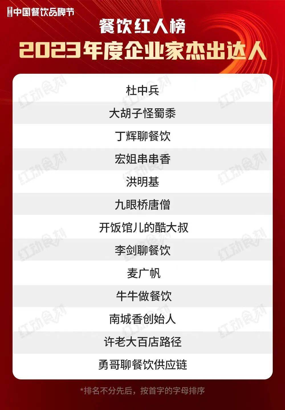 经过海选报名、严格的初筛以及公正的专业评审阶段后,“2023年度餐饮红人榜”五大奖项获奖名单正式出炉。