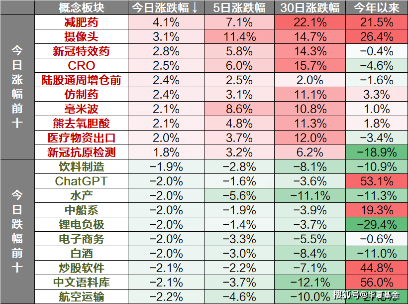 概念主题方面,减肥药、摄像头、新冠特效药等板块上涨,航空运输、˙中文语料库、炒股软件等板块下跌。