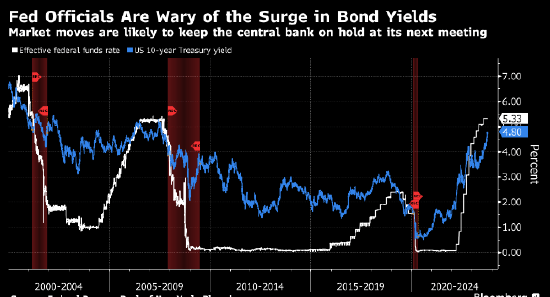 美联储高层正在向这样一个共识靠拢,即最近美国国债收益率飙升后,金融环境的收紧可能起到了再次加息的效果。
