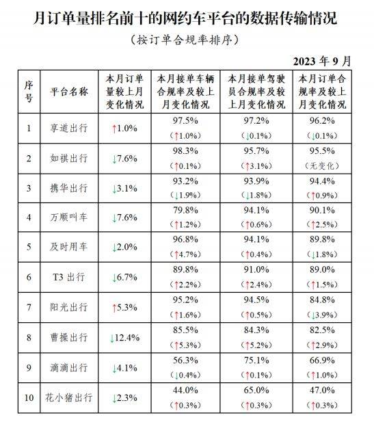 其中,面向乘客、与网约车平台公司共同提供服务的平台(俗称“聚合平台”)完成2.15亿单,环比下降5.7%。按订单合规率由高到低的分别是滴滴出行、高德打车、携程用车、花小猪出行、美团打车、百度打车、腾讯出行。