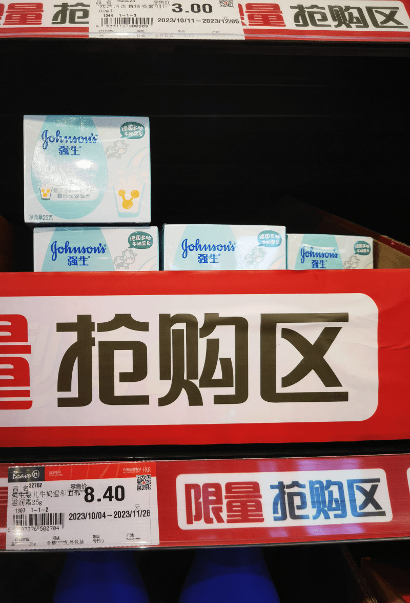 在价格方面,记者随机挑选了几样产品对比发现,部分产品价格比线上电商销售价格更低。如“强生婴儿牛奶温和面部滋润霜25g”在某电商渠道价格为折后15.9元,而在该区域只需要8.4元,有效期一直到2025年12月12日;“蕉下胶囊系列五折伞(仲夏粉)”在某电商渠道的价格为折后139元,而在该区域只需59.7元。