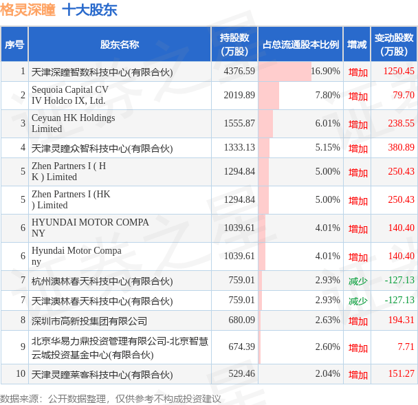 根据格灵深瞳2023年中报公布的十大股东详情如下: