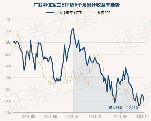 10月11日,广发中证军工ETF最新单位净值为1.0209元,累计净值为1.0209元,较前一交易日下跌1.09%。历史数据显示该基金近1个月下跌5.35%,近3个月下跌10.61%,近6个月下跌10.21%,近1年下跌7.09%。该基金近6个月的累计收益率走势如下图: