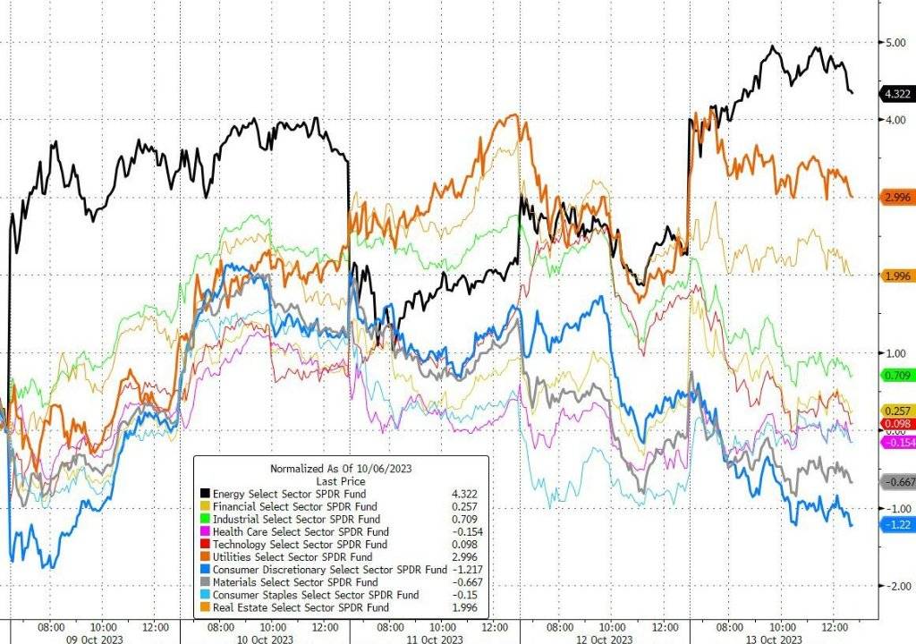 黄金不是周五大宗商品中唯一的大赢家。投资者担心巴以冲突范围扩大波及中东产油大国,周四一度盘中齐跌的国际原油昂首上行,周五盘中涨幅扩大到5%以上,继巴以爆发冲突后首个交易日周一之后,再创今年4月初OPEC+多国宣布自愿减产以来最佳单日表现。