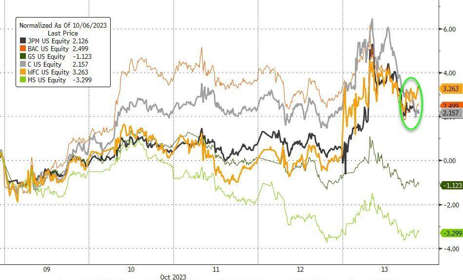三家美国大银行给三季度财报季开了好头,暂时打消了市场对高利率环境下大行业绩受创的担忧。但美股未能高歌猛进,中东冲突升级、油价上涨和美国通胀预期意外上行令美联储紧缩预期再度升温,共同打击大盘。