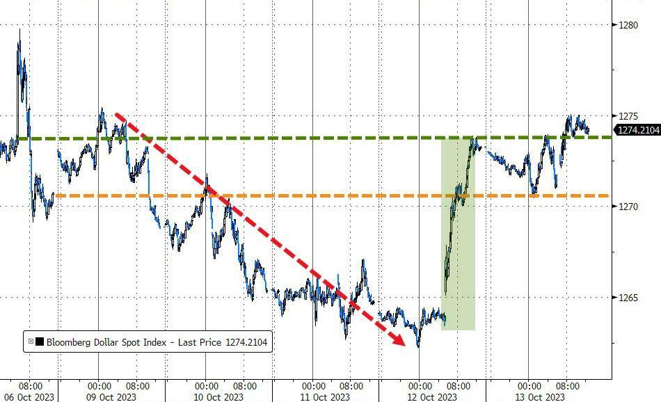 因周四大涨后周五继续走高,彭博美元指数本周转涨
