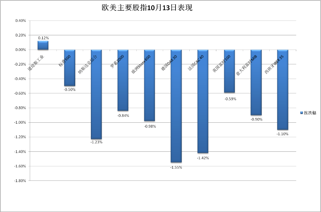 欧股方面,中东冲突升级之际,能源价格上涨加剧市场对高通胀持续的担忧,泛欧股指止步三日连涨。欧洲斯托克600指数跌落周四刷新的9月21日以来收盘高位。主要欧洲国家股指大多也下跌,法股连跌三日,德股和西股连跌两日,连涨三日的意股和周四反弹的英股回落。
