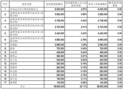 首发限售股上市流通明细清单