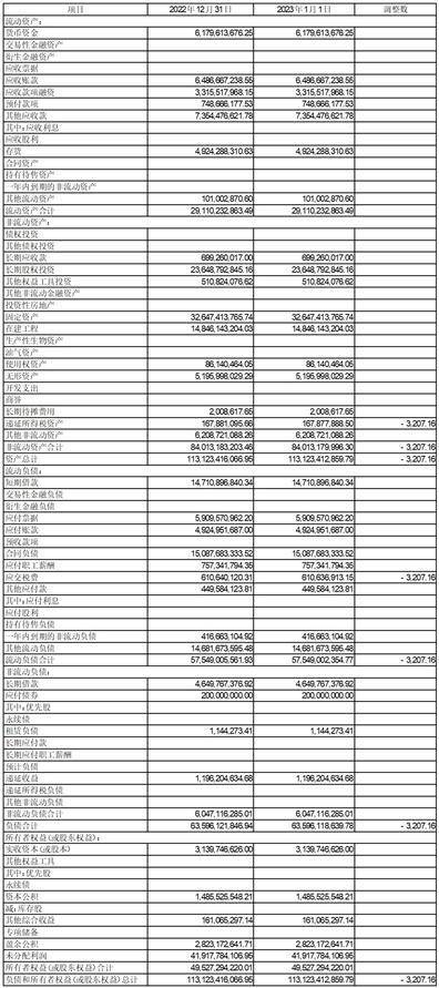 2023年起首次执行新会计准则或准则解释等涉及调整首次执行当年年初的财务报表