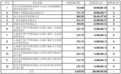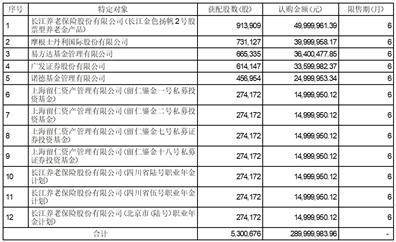获配数量:长江金色扬帆2号股票型养老金产品(913,909股)、四川省伍号职业年金计划(274,172股)、四川省陆号职业年金计划(274,172股)、北京市(陆号)职业年金计划(274,172股)