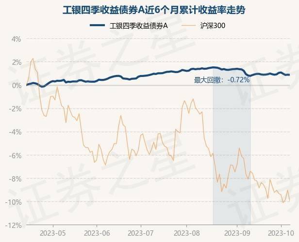 证券之星消息,10月13日,工银四季收益债券A最新单位净值为1.0811元,累计净值为1.8153元,较前一交易日下跌0.01%。历史数据显示该基金近1个月下跌0.04%,近3个月下跌0.14%,近6个月上涨0.88%,近1年上涨1.51%。该基金近6个月的累计收益率走势如下图: