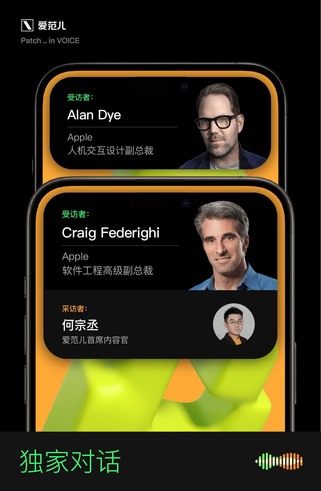 几个月前我们和苹果 CEO Tim Cook 在上海重逢,最近爱范儿首席内容官何宗丞又独家专访了苹果软件工程高级副总裁 Craig Federig 和苹果负责人机交互设计的副总裁 Alan Dye 。