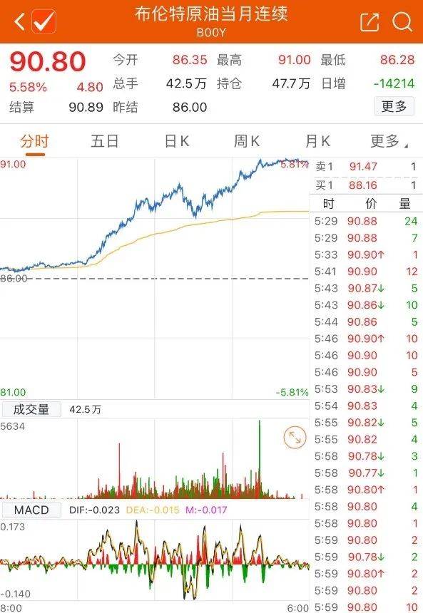 当地时间周五,巴以冲突再度升级,国际油价再遭“血色助攻”。截至收盘,WTI原油主力合约上涨5.8%,报87.72美元/桶,布伦特油主力合约上涨5.58%,重返90美元/桶上方,报90.80美元/桶。