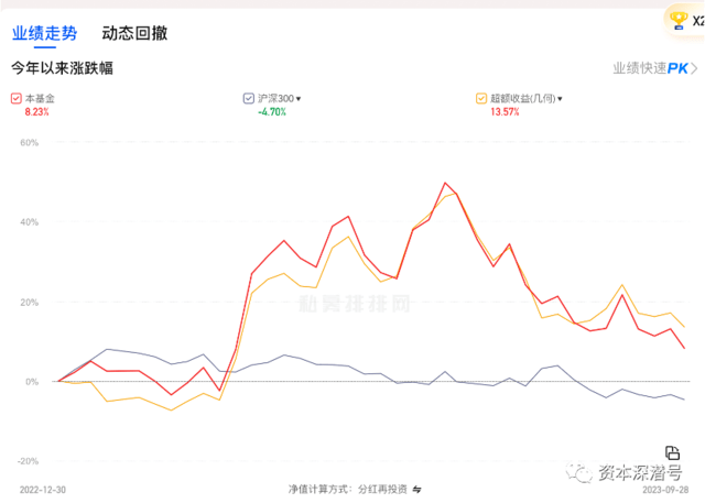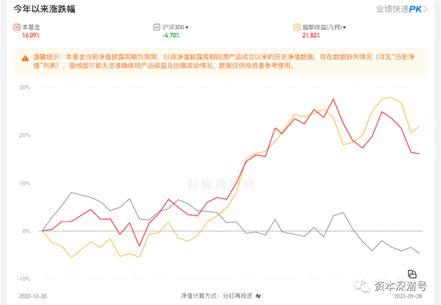 对比同期大盘股指数沪深300、小盘股指数中证1000、香港恒生指数都是负收益(三者年内收益为-4.7%、-3.23%、-12.27%)。
