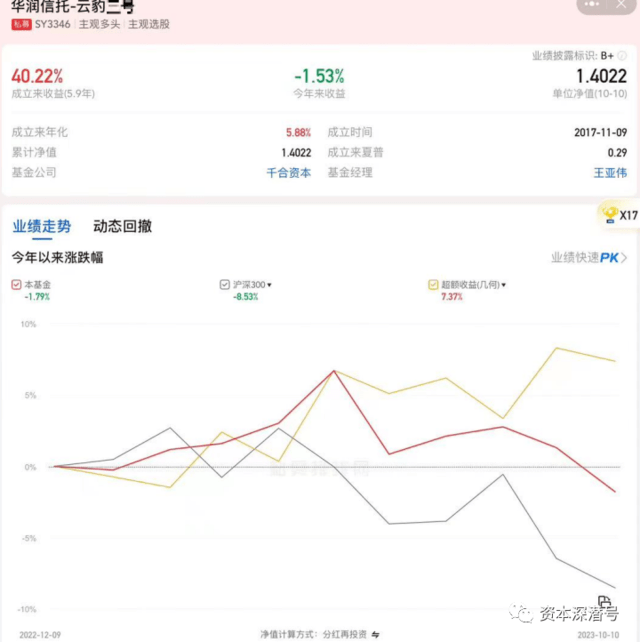 以其代表性产品云豹X期为例,今年运行至今是负收益。考虑到前几年它的产品也未能有特别凌厉的上涨,这样的中长表现让人有基金经理“心不在焉”之感。