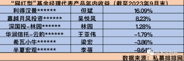 截至2023年9月末,一批网红型的私募基金经理的业绩付出水面。