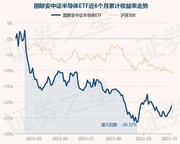 10月11日,国联安中证半导体ETF最新单位净值为0.8348元,累计净值为1.6696元,较前一交易日上涨1.42%。历史数据显示该基金近1个月下跌1.53%,近3个月下跌9.56%,近6个月下跌21.07%,近1年上涨11.77%。该基金近6个月的累计收益率走势如下图:
