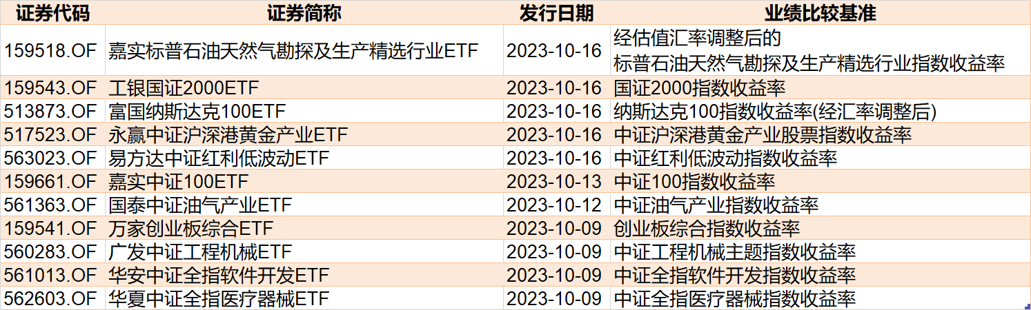 值得注意的是,10月假期过后,目前已披露发行的ETF已达11家,已超过了9月的一半。
