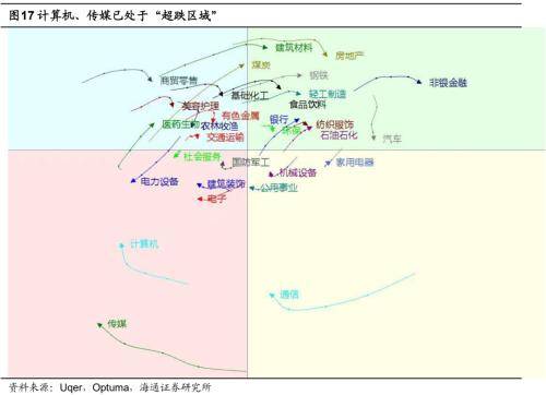 中长期维度科技成长是行情主线。从更长的时间维度看,当下我国经济大背景将持续处于结构转型升级过程中,因此需加快建设现代化产业体系。当前我国已经把科技自立自强作为国家发展的战略支撑,二十大报告明确指出要坚持创新在我国现代化建设全局中的核心地位。随着10月底上市公司三季报披露完毕,改革预期的不断提升,市场的关注焦点或从微观企业利润转向经济转型和改革的受益方向,映射到股市上,科技行业或将成为股市中期的主线。此外我们参考RRG模型观察各行业的超额收益趋势,模型显示经历近期的下跌后TMT行业已处于“超跌区域”,性价比逐渐凸显,后续超额收益趋势存在逆转可能。